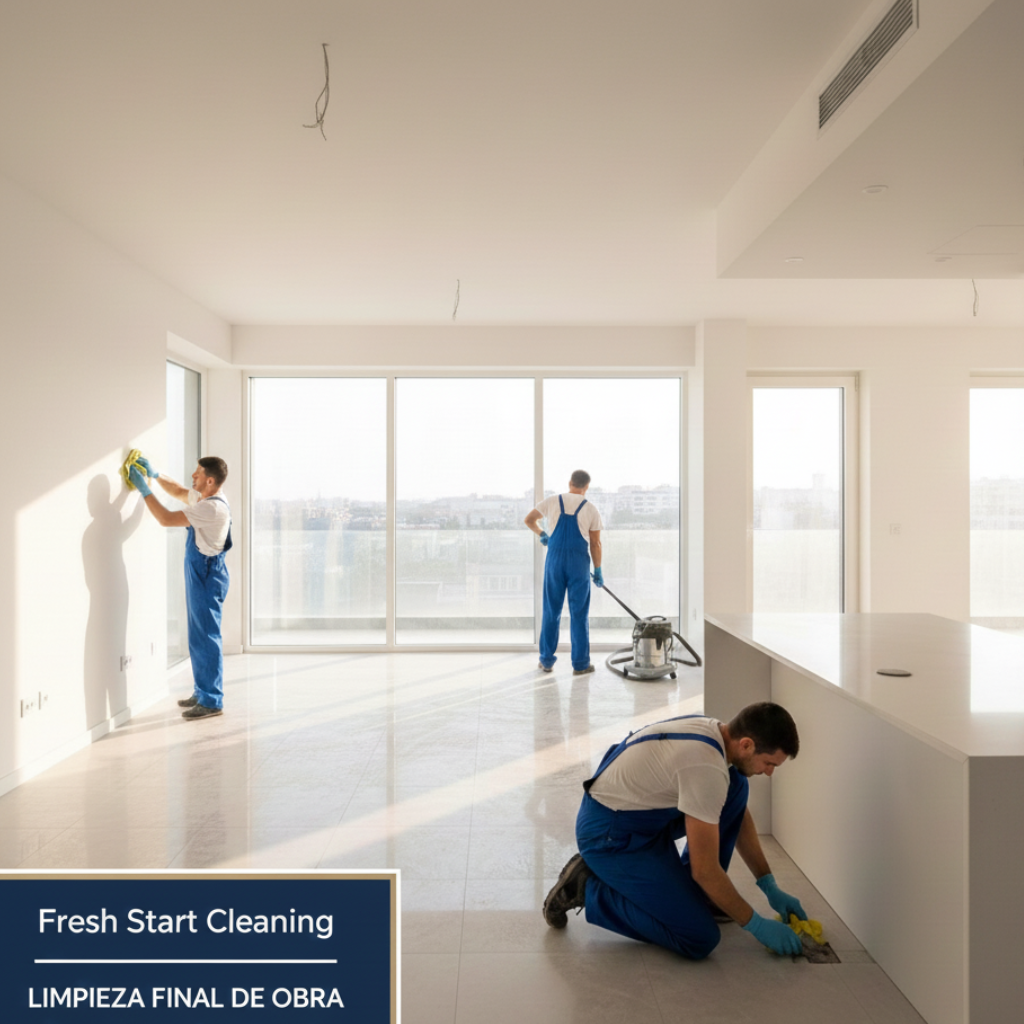 En Fresh Start Cleaning somos especialistas en limpieza final de obra y post-reforma en Málaga, ofreciendo un servicio profesional orientado a la eliminación completa de suciedad técnica generada durante trabajos de construcción, reforma o rehabilitación. Nuestro objetivo es dejar la vivienda o el local totalmente limpio, higienizado y visualmente impecable, preparado para entrar a vivir, alquilar, vender o entregar al cliente final. Trabajamos con método, planificación y personal cualificado, adaptando cada intervención al estado real del inmueble.